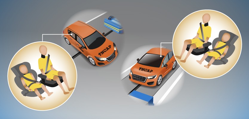 研究指出行車時正確使用兒童保護裝置(Child restraint system, CRS;俗稱兒童安全座椅)可減少兒童71%死亡率,後向乘坐有效降低兒童頸部73%衝擊力,且安全性提高75%