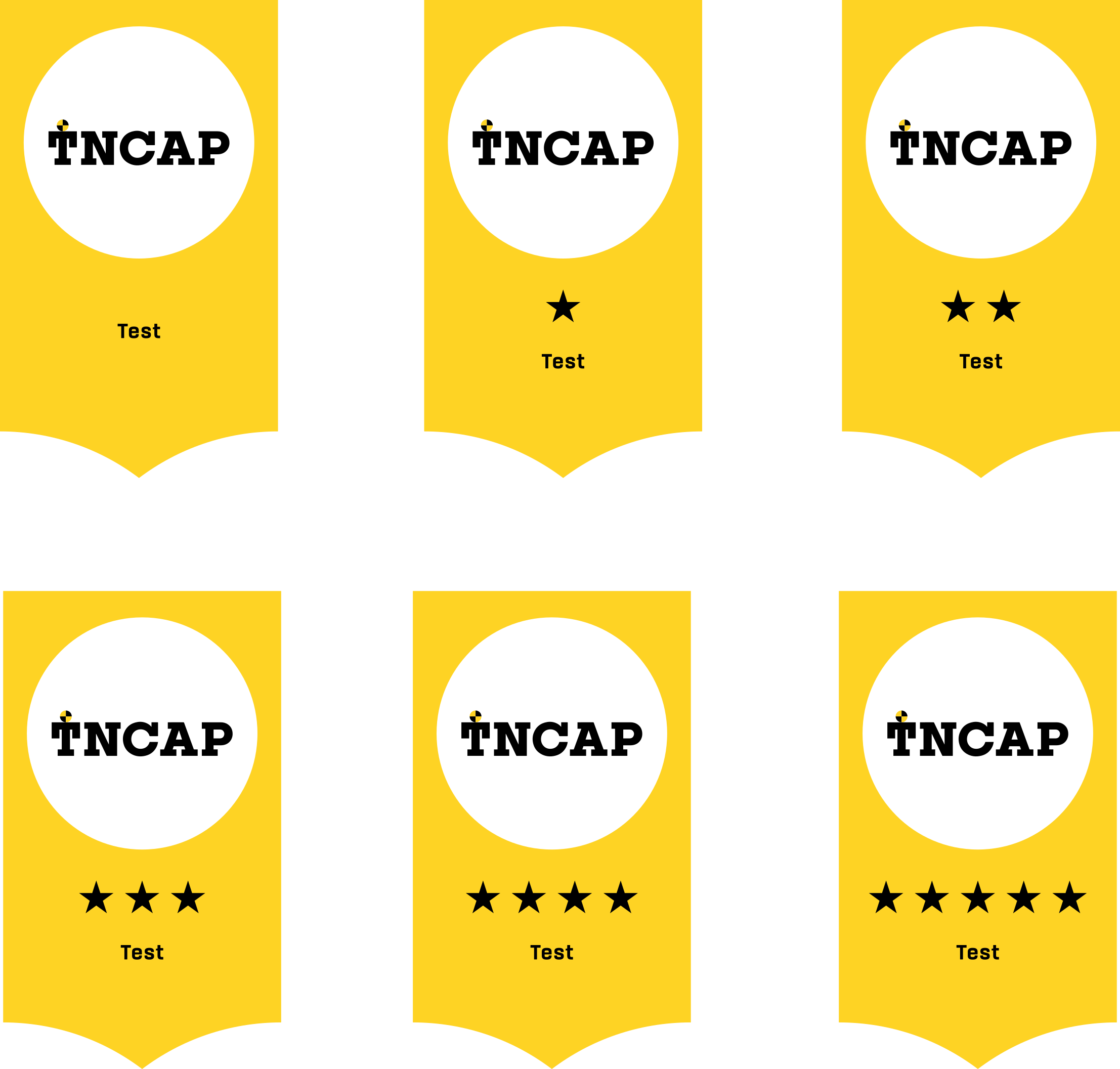 TNCAP 視覺標識使用規範係為確保以適當且一致性的方式使用該視覺形象及星級評等。本視覺標識所涉及「TNCAP證明標章」及「TNCAP星級標識證明標章」均已取得經濟部智慧財產局核定並報經交通部在案,相關使用及注意須知應依交通部核定之相關規章及TNCAP執行機構公告之樣式辦理;如有相關問題,請洽TNCAP執行機構。